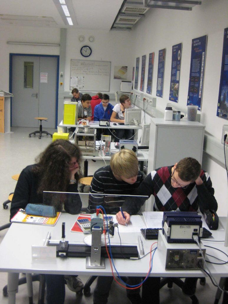 Am Mon­tag den 17.12. mach­te sich der Phy­sik Nei­gungs­kurs von Frau Dr. Thier­ing mit dem Zug um 6:47 von Neckar­ge­münd Alt­stadt auf gen Darm­stadt. Trotz der frü­hen Stun­de waren alle hoch moti­viert und gespannt, was uns in Darm­stadt erwar­ten wür­de. Nach der Zug Fahrt nach Wix­hau­sen und einer klei­nen Tour durch den Ort mit dem Werks Bus kamen wir bei der GSI (Gesell­schaft für Schwer­io­nen­for­schung) an. Als jeder einen Besu­cher­aus­weis erhal­ten hat­te, führ­te uns Herr Schwemm­lein, der hier viel aktiv ist und forscht, zum Schü­ler-­- Lab. Hier wur­den wir schon freu­dig erwar­tet. Wir beka­men eine kur­ze Ein­wei­sung, und erklärt, dass das Schü­ler-­-Lab ein­ge­rich­tet wur­de, um Schü­lern das Expe­ri­men­tie­ren mit Gerä­ten und an Ver­su­chen zu ermög­li­chen, wozu sie nor­mal in der Schu­le nicht die Mög­lich­keit zu hät­ten, was mei­ner Mei­nung nach sehr gut gelun­gen ist. Mit die­sem Expe­ri­men­tie­ren ging es dann auch rela­tiv schnell los. Es gab meh­re­re unter­schied­li­che Ver­suchs­sta­tio­nen, an denen immer zu zweit oder zu dritt an einem brei­ten Ange­bot an Expe­ri­men­ten gear­bei­tet wur­de. Es gab Ver­su­che wie z.B. DNA Schä­den durch Radio­ak­ti­vi­tät zu unter­su­chen oder sogar Ver­su­che, bei denen die ver­schie­de­nen Strah­lungs­ty­pen an radio­ak­ti­ven Prä­pa­ra­ten unter­sucht wur­den ( natür­lich nichts schäd­li­ches, nur in ganz gerin­ger Dosis). So expe­ri­men­tier­te jeder an sei­nem Ver­such, bis wir uns zu einer klei­nen Mit­tags­pau­se in die Cafe­te­ria auf­mach­ten, wo wir etwas aßen und uns ein wenig aus­ru­hen konn­ten. Nach der Mit­tags­pau­se muss­ten noch eini­ge Ver­su­che kurz zu Ende geführt oder aus­ge­wer­tet wer­den, sodass wir dann kur­ze Zeit spä­ter uns die Ver­su­che gegen­sei­tig vor­stell­ten. Nach­dem jeder sei­nen Ver­such vor­ge­stellt hat­te erzähl­te uns der net­te Mann von der GSI etwas über die GSI an sich und sei­nen Teil­chen­be­schleu­ni­ger, wie er auf­ge­baut ist und wel­che Ele­men­te dort in Darm­stadt schon ent­deckt wur­den. (Im Peri­oden­sys­tem die Ele­men­te 107-­-112,-­- könnt ihr mal nach­schau­en, wenn ihr Lust habt). Nach­dem wir von ihm einen theo­re-­- tischen Über­blick über die GSI erhal­ten hat­ten, zeig­te uns nun Herr Schwemm­lein und ein Kol­le­ge das Gan­ze in real. Wir beka­men den Teil­chen­be­schleu­ni­ger aus der Nähe zu sehen und auch erklärt, wie er funk­tio­nier­te (Das Gan­ze auf Eng­lisch, da der Kol­le­ge aus Indi­en kommt und nur spär­lich Deutsch spre­chen konn­te, was uns aber kei­ne Pro­ble­me berei­te­te). Nach­dem wir im Teil­chen­be­schleu-­- niger, in einer The­ra­pie­sta­ti­on für Gehirn­tu­mo­re und in der „Koman­do­zen­tra­le“ für die Ver­su­che einen schö­nen Ein­blick in das Insti­tut bekom­men hat­ten, war der Tag an der GSI für uns auch schon wie­der zu Ende und wir bedank­ten uns und tra­ten den Heim­weg an. Alles in allem war es ein sehr inter­es­san­ter Tag, an dem wir viel zu sehen beka­men und ein­mal ganz ande­re Expe­ri­men­te als in der Schu­le machen konn­ten. Wir freu­en uns auf den nächs­ten Aus­flug, der hof­fent­lich genau­so span­nend und erfolg­reich wird!