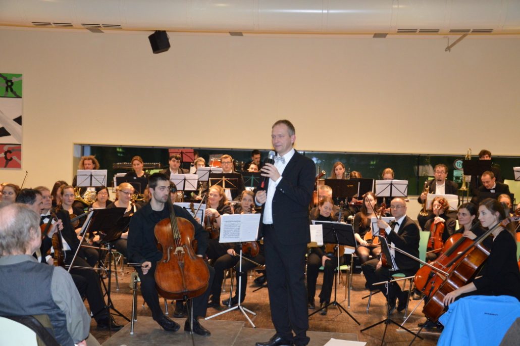Einen unglaub­li­chen Ohren­schmaus beka­men die Gäs­te des Sym­pho­nie­kon­zerts am 16. Febru­ar 2016 in der Aula des Max-Born-Gym­na­si­ums gebo­ten. René Schuh prä­sen­tier­te mit sei­nem Sym­pho­nie­or­ches­ter „Musik­freun­de Hei­del­berg“ vir­tu­os und vol­ler Dyna­mik das Kon­zert für Vio­lon­cel­lo h-Moll, op. 104 und die Sin­fo­nie Nr. 7 d-Moll, op. 70.