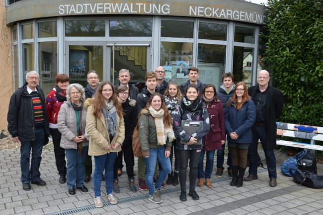 Am 16. Febru­ar 2016 fand im Rat­haus Neckar­ge­münd ein Arbeits­tref­fen mit Prof. Dr. Cord Are­n­des, Prof. Dr. Frank Enge­hau­sen, der stu­den­ti­schen Hilfs­kraft Julia Schön­tha­ler, Joa­chim Phil­ipp und Elli Plett vom MBG, den Schü­lern des Semi­nar­kur­ses, Kul­tur­re­fe­ren­tin Doris Mey­er zu Schwa­be­dis­sen, Archiv­mit­ar­bei­te­rin Vere­na Schmitt, Dr. Hans-Wer­ner Scheu­ing von der Arbeits­grup­pe NS „Eutha­na­sie“ und Bür­ger­meis­ter Horst Alt­hoff statt. Horst Alt­hoff freu­te sich sehr, „dass unse­re Schu­le an die­sem inter­es­san­ten und wich­ti­gen Pro­jekt teil­nimmt. Die Aus­wir­kun­gen der NS-Zeit sind immer noch in unse­rer Gesell­schaft zu spü­ren. Unse­re Regi­on ist eine span­nen­de Ecke, die NSDAP hat hier teil­wei­se 80% geholt. Ich möch­te unbe­dingt über die­ses Pro­jekt auf dem Lau­fen­den gehal­ten wer­den und wün­sche Ihnen allen viel Erfolg.“ Für Pro­fes­sor Are­n­des ist der regio­na­le Fokus des Pro­jekts beson­ders wich­tig, denn die­ser ist kaum in den Schul­bü­chern zu fin­den. Auf die­se Wei­se erfah­ren die Schü­ler eine Rück­bin­dung an die eige­ne Lebens­welt und wer­den für das wis­sen­schaft­li­che Arbei­ten begeis­tert. Joa­chim Phil­ipp, stell­ver­tre­ten­der Schul­lei­ter des MBG, wünsch­te den Schü­lern viel Spaß bei der „span­nen­den kri­mi­na­lis­ti­schen Arbeit“.