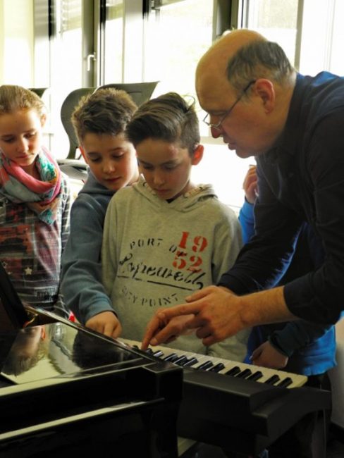 Seit dem Schuljahr 2015/16 gibt es am Max-Born-Gymnasium eine weitere Kooperation mit einem außerschulischen Partner– in diesem Fall betrifft es den Fachbereich Musik und die Städtische Musikschule Neckargemünd. Deren Leiter, Stephan Schmitz, hat gemeinsam mit der Fachschaft Musik das Konzept der „Musikexperten“ für Schülerinnen und Schüler der Klasse 5 entwickelt und organisiert: Vier Monate lang konnten 13 Schüler jeden Freitag nach Schulschluss in den Räumen des MBG in der „Musikexperten-AG“ Instrumente ausprobieren. Neben ausgefalleneren Instrumenten wie Harfe, Tuba und Akkordeon kamen alle Streichinstrumente, E-Bass, Schlagzeug und Percussioninstrumente, alle Blechblasinstrumente, Klarinette, Saxofon; Block- und Querflöte zum Einsatz. Innerhalb von 60 Minuten Unterricht präsentierte jeweils eine Lehrkraft der Musikschule das Instrument im Klang, berichtete über Besonderheiten beim Spielen und die Schüler hatten Zeit, Fragen zu stellen.