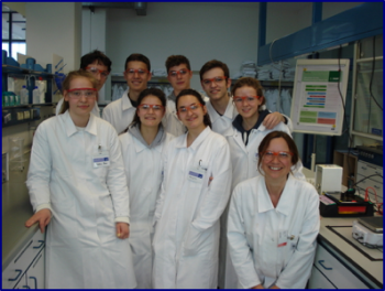 In dem hoch­mo­der­nen Labor führ­ten die Schü­ler in Zwei­er­grup­pen anspruchs­vol­le Expe­ri­men­te durch. Aus ver­schie­de­nen Mais-Pro­ben wur­de DNA iso­liert, die­se wur­de mit­tels einer Poly­me­ra­se-Ket­ten-Reak­ti­on ver­mehrt und schließ­lich in einer Gel-Elek­tro­pho­re­se auf­ge­trennt. Erfah­re­ne Fach­kräf­te stan­den hier­bei den Schü­le­rin­nen und Schü­lern zur Sei­te und führ­ten sie in die kom­pli­zier­ten Expe­ri­men­tier-Appa­ra­tu­ren ein. In wei­te­ren Ver­suchs­rei­hen unter­such­ten die Neckar­ge­mün­der Gym­na­si­as­ten die Hit­ze­sta­bi­li­sie­rung von Enzy­men und unter­schied­li­che Mög­lich­kei­ten der Trans­for­ma­ti­on bei Bak­te­ri­en.