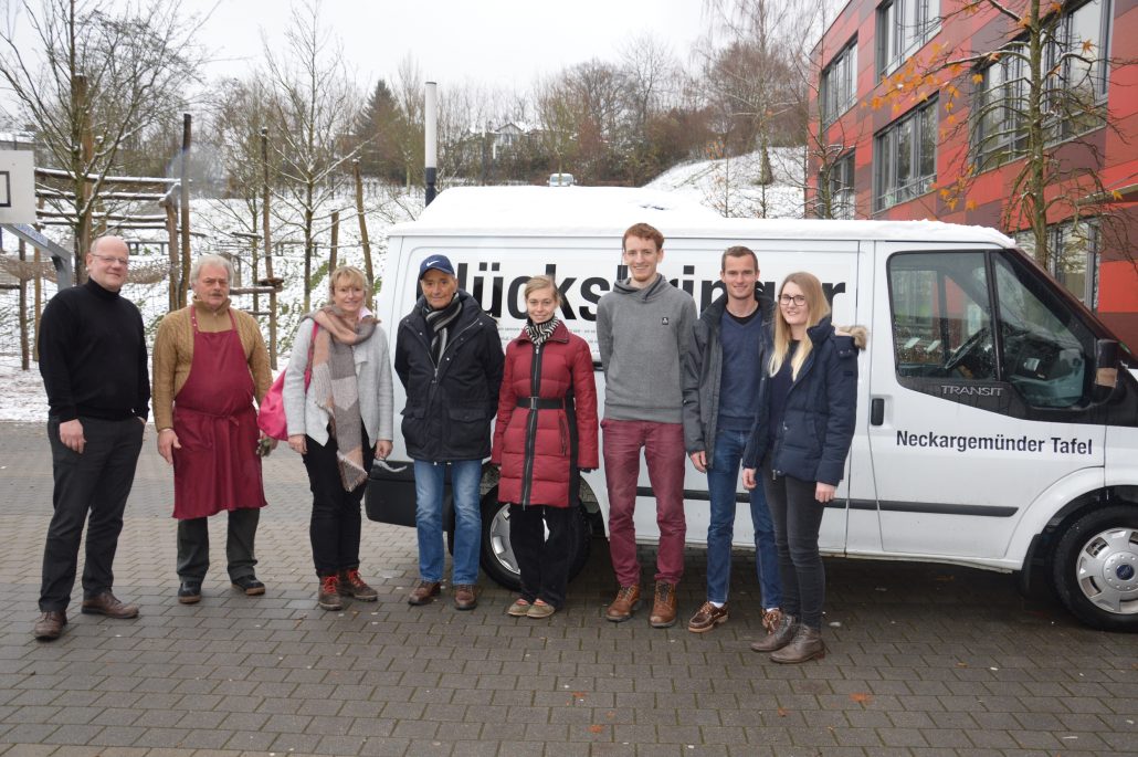 Am 4. Dezember 2017 holten Kurt Hütter und Klaus Rudniki von der Tafel die Spenden ab. Auch Schulleiter Joachim Philipp begrüßte Herrn Hütter und dankte Dr. Heike Vierling-Ihrig für die tolle Organisation.