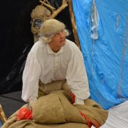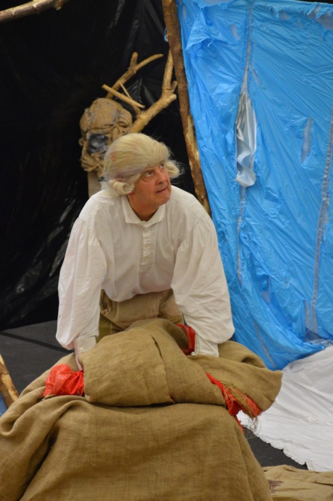 Georg Büchner ist bereits vor 181 Jahren gestorben, doch seine Werke sind immer noch aktuell. Die Themen Religion, Tod und Revolution beschäftigen die Menschheit auch heute. Aus diesem Grunde sind Büchners Werke Bestandteil des Deutschunterrichts der gymnasialen Oberstufe und „Dantons Tod“ ist sogar Sternchenthema im diesjährigen Abitur. Um den Schülern die Welt Georg Büchners näher zu bringen, besuchte das Klassenzimmertheater THEATERmobileSPIELE am 16.01.2018 das Max-Born-Gymnasium Neckargemünd. Das Ein-Mann-Theater besteht seit 11 Jahren und führt die aktuelle Inszenierung im fünften Jahr auf. Es ist kein eindeutiger Handlungsstrang erkennbar, da sie diverse Auszüge aus Büchners Werken miteinander verknüpft. Das Bühnenstück gibt den Schülern eine völlig neuartige Möglichkeit, den bedeutenden deutschen Schriftsteller Büchner zu begreifen. Der erfahrene Schauspieler Rüdiger Hellmann verkörpert im Stück „Büchner. Die Welt. Ein Riss.“ verschiedene Charaktere aus den Werken des jungen Schriftstellers und Revolutionärs und lässt anhand von Briefen und Passagen eine vielschichtige theatrale Textur entstehen. Dies wird perfekt in Szene gesetzt vom Regisseur und Gründer des Klassenzimmertheaters, Thorsten Kreilos. Zusammen mit der Bühnenbildnerin Silvia Maradea entwarf er eine Bühne, die mit dem Inhalt des Stücks stets korreliert. Der limitierte Raum, welcher dem Schauspieler zur Verfügung steht, wird effektiv genutzt. Es werden Naturmaterialien, wie Holz und Jute, mit Kunstoffen in Form von Folien und Planen kontrastiert. Durch Zerreißen des Bühnenbilds im Verlaufe des Stücks verändert der Schauspieler ständig die Gestalt seines Spielraums und interagiert mit seinem Umfeld. Somit wird Schritt für Schritt die von Georg Büchner empfundene Leere und Verlassenheit in Form von totem Holz und schwarzen Plastikplanen freigelegt. Die Bühne ist genauso vielschichtig wie Büchner selbst. Abhängig von der Perspektive können seine Werke in vielerlei Hinsicht gedeutet werden.