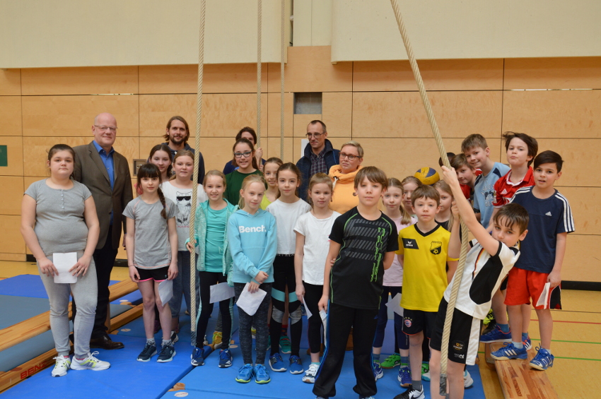 „Das Spie­le­fest ist eine her­vor­ra­gen­de Akti­on der Sport­fach­schaft. Die Viert­kläss­ler der Neckar­ge­mün­der Grund­schu­le kön­nen hier ers­te Schrit­te in der neu­en „gro­ßen“ Schu­le machen und die Turn­hal­le erkun­den. Die Kol­le­gen der Grund­schu­le sind begeis­tert, denn sie tref­fen ihre ehe­ma­li­gen Schü­ler wie­der.“, freu­te sich Schul­lei­ter Joa­chim Phil­ipp am 23. Febru­ar 2018. Gemein­sam mit der Klas­se 9c hat­ten Patrick Hel­ten und Axel Gruh­ler aus der Sport­fach­schaft 20 viel­sei­ti­ge Sta­tio­nen vor­be­rei­tet, an denen die Viert­kläss­ler der Grund­schu­le Neckar­ge­münd gemein­sam mit den Fünft­kläss­lern des Max-Born-Gym­na­si­ums sport­lich aktiv wer­den konn­ten.