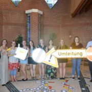 „Acht Jahre Schulzeit liegt hinter euch; ihr habt manch eine Hürde, schwierige Situation und Enttäuschung überwunden. Diese dürft ihr hier auf die symbolischen Steinkarten schreiben und hier ablegen. Ihr könnt sie so zu sagen hinter euch lassen“, führte Vierling-Ihrig in den Hauptteil des Gottesdienstes ein. Begleitet von wunderschöner Musik legten die Abiturienten bildlich ihre Last ab. Vierling-Ihrig hielt eine Ansprache zu Psalm 91,1 und zeigte im Anschluss sehr anschaulich unter Einbeziehung verschiedener Verkehrszeichen auf, dass Lebenswege manchmal anders verlaufen, als geplant, aber oft zeigen uns „Umleitungsschilder“ einen neuen Weg auf. Falls wir einmal in eine richtige „Sackgasse“ geraten sollten, in der es wirklich nicht weiter geht, haben wir hoffentlich liebe Menschen in unserem Umfeld, die uns heraushelfen – oder eben einen Engel, gemäß Psalm 91.