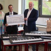„In meinen beiden siebten Klassen konnte ich die vier neuen Keyboards bereits einsetzen: beim Üben von Dreiklängen um damit einen modernen Popsong zu begleiten – das hat den Schüler/innen viel Spaß gemacht!“, erzählte Musiklehrerin Julia Ruch bei der Scheckübergabe am 10. Dezember 2018.