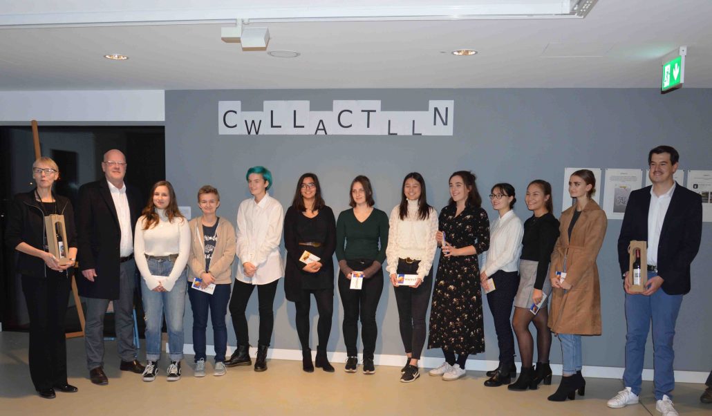 Die Ver­nis­sa­ge, die von Frau Dr. Doro­thee Höfert gelei­tet wur­de, beinhal­te­te eine Rede sowohl von Höfert als auch von Fré­dé­ric Bri­end und Schul­lei­ter Joa­chim Phil­ipp. Bri­end berich­te­te den Besu­chern etwas über die Ent­ste­hung der Aus­stel­lung und die Idee hin­ter dem The­ma „Begeg­nun­gen“. Anschlie­ßend erhiel­ten die Schü­le­rin­nen noch ein biss­chen Ner­ven­nah­rung als Zei­chen der Dank­bar­keit, damit sie die kom­men­de Woche gut über­ste­hen.