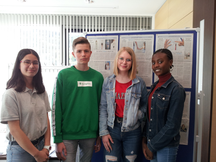 Zur gro­ßen Freu­de des Max-Born-Gym­na­si­ums waren dar­un­ter auch drei Arti­kel von Schü­lern der 9. Klas­sen: Ame­lie Hane­mann, Sarah Tcha­ma­ko, Joel­le Kro­nau­er und Sebas­ti­an Wag­ner waren in Beglei­tung der Deutsch­leh­re­rin Kat­rin Kieck­hä­fer-Wüst nach Eber­bach ein­ge­la­den.