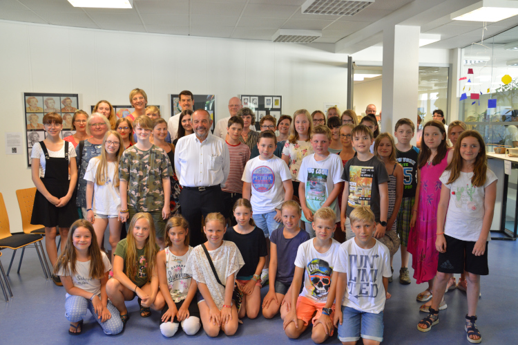 Jürgen Rehberger, stellvertretender Bürgermeister, begrüßte bei der Vernissage am 27. Juni die jungen Künstlerinnen und Künstler der Realschule und des Max-Born-Gymnasiums, ihre Eltern sowie die Kunstpädagoginnen Karolin Fröhling und Elisabeth Roth vom MBG und Yvonne Apfel, Nadine Karker, Katharina Milte, Susanne Weber-Ansorge und Lea Weigel von der Realschule sowie den Fachbereitsleiter Frédéric Briend vom MBG: „Ich bin überrascht von der Vielfalt! Es ist unglaublich, was man alles aus verschiedenen Materialien schaffen kann. Euer Kunstunterricht ist nicht zu vergleichen mit dem, was ich als Schüler vor 40 Jahren geboten bekam. Diese tollen Kunstwerke zeigen, mit wie viel Begeisterung ihr bei der Sache seid. Wir freuen uns, dass unser Rathaus durch eure Kunstwerke eine Verschönerung erfährt!“ Jürgen Rehberger dankte den beiden Schulen für die gute Kooperation und Doris Meyer zu Schwabedissen für die Organisation der Ausstellung. Auch Marion Marker-Schrotz, Schulleiterin der Realschule und Joachim Philipp, Schulleiter des MBG, dankten Doris Meyer zu Schwabedissen, den Kunstfachschaften, den jungen Künstlern und der Stadt Neckargemünd für die tolle Zusammenarbeit. Die beiden Kulturmentorinnen der Realschule, Marlene und Zoe, erhielten ein kleines Präsent der Stadt Neckargemünd für ihre Mithilfe beim Aufbau der Ausstellung.