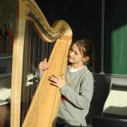 In jeder Unterrichtsstunde kommt ein Musikprofi von der Musikschule mit seinem Instrument ans MBG und die Schüler dürfen hautnah miterleben, wie eine Harfe, eine Geige, eine Tuba, eine Klarinette und viele weitere Instrumente klingen. Natürlich kommt das Ausprobieren nicht zu kurz: