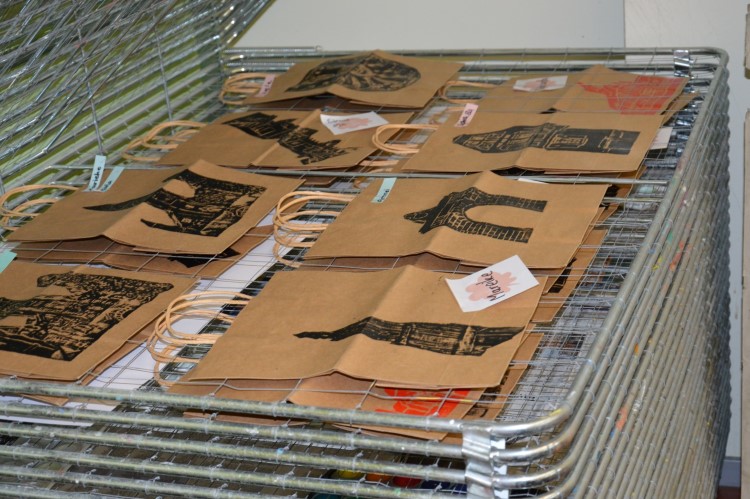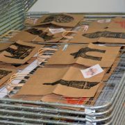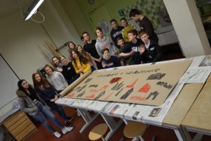 Mehr als nur ein Trostpflaster für die enttäuschten verhinderten Gastgeber gab es dennoch am Freitag, 6. 3. 2020: Ein Programmpunkt des geplanten Austauschs konnte dennoch stattfinden, nämlich ein Projekt der Kulturstarterinnen, unterstützt von Kunst-Lehrer Frédéric Briend. Lucy Ripke und Joelle Kronauer aus der 10b sowie Emma Fink aus der 10c hatten einen mehrtägigen Kurs in Heidelberg absolviert und an einigen Treffen teilgenommen. Die Aktion mit dem Schüleraustausch stellt das Abschluss-Projekt für die Kulturstarter-Zertifizierung dar. Die Zehntklässlerinnen leiteten die deutschen Jugendlichen aus der 8 . und 9. Klasse dabei an, Bilder von Gebäuden aus Neckargemünd und Amersfoort auf Styrene-Platten zu übertragen und die Vorlagen dann auf Papier zu drucken. Jede Schülerin und jeder Schüler gestaltete auf diese Weise zwei Papiertüten, von denen eine per Post nach Amersfoort geschickt wird. Außerdem entstand noch ein echtes Gemeinschaftsprodukt: Unter der Überschrift „Amersgemünd und Neckarfoort“ entstand die Silhouette einer „Zwei-Länder-Stadt“ mit doppeltem Stadtwappen und den Umrissen von Gebäuden aus beiden Städten. (We)