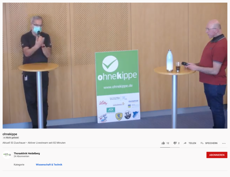 Die Übertragung des Livestreams via YouTube ging von 10 Uhr bis ca. 11:30 Uhr und funktionierte wunderbar ohne technische Störungen. Wie bei einer Veranstaltung vor Ort wurden wir zuerst über die Risiken des Rauchens informiert, erhielten dann einen Einblick in eine Lungenendoskopie und konnten einem Interview mit einem betroffenen Patienten der Thoraxklink folgen. Während des Livestreams konnten über unsere schuleigene myMBG-App Fragen an den Referenten der Thoraxklinik, Michael Ehmann, gerichtet werden.