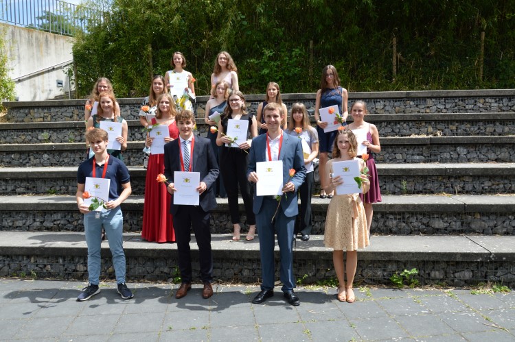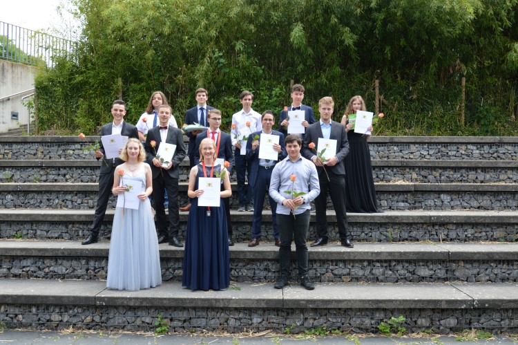 Nach der Zeugnisvergabe durch Schulleiter Joachim Philipp und die Oberstufenbetreuerin Hanna Steck folgte in jeder der drei Gruppen die Preisverleihung. Die Medaillen für herausragende schulische Leistungen, geziert von einem besonders „wilden“ Konterfei Beethovens, erhielten in diesem Jahr Vincent Schmid, Julia Schwarzbeck, Anshel Nohl, Jasper Kania und Libor Hillers, die alle darüber hinaus mehrfach geehrt wurden: