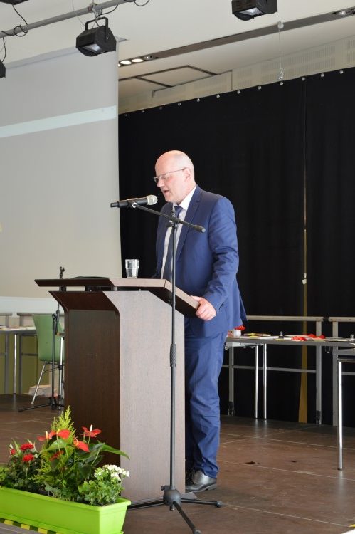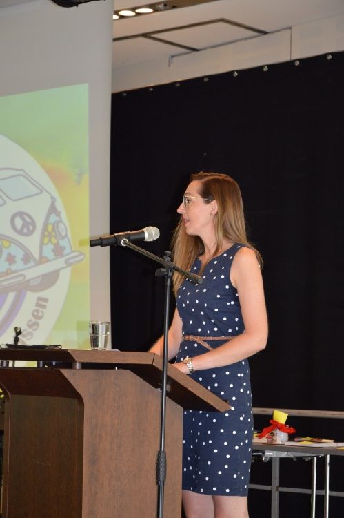 Im Namen der Eltern richtete im Anschluss Eva-Maria Krämer das Wort an die Abiturient*innen. Gemäß dem Goethe zugeschriebenen Satz, „Zwei Dinge sollen Kinder von ihren Eltern bekommen: Wurzeln und Flügel“, sicherte sie den jungen Leuten zu, dass die Eltern sie auch bei ihren „Flugversuchen“ nach dem Abitur gern begleiten werden und ihnen weiterhin als Ratgeber und Mentoren zur Seite stehen werden.
