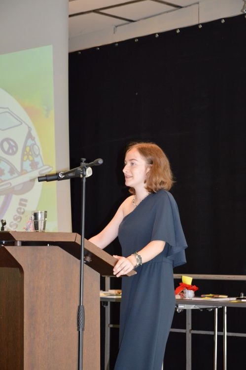 Die diesjährige Scheffel-Preisträgerin, Hannah Oberholz, blickte in ihrer Rede auf die Schuljahre am MBG zurück, wo sie vieles gelernt habe. „Ich weiß viele Dinge, von denen ich mir nicht vorstellen kann, dass ich sie nicht schon immer wusste.“ Neben fachlichen Inhalten und neuen Perspektiven auf das Leben erinnerte sie auch an Studienfahrten und die fröhlichen gemeinsamen Zeiten in der Schule. Voller Optimismus wünschte sie sich und ihrem ganzen Jahrgang, mit Entschiedenheit den neuen Lebensabschnitt „Erwachsen sein“ ebenso zu genießen wie die zurückliegende Schulzeit.