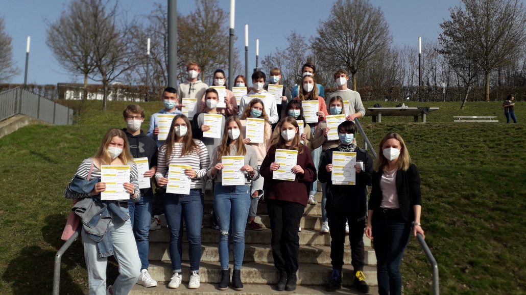 Nach­dem die Tes­tung im ver­gan­ge­nen Schul­jahr erst­mals am MBG ange­bo­ten wer­den konn­te, nah­men auch in die­sem außer­ge­wöhn­li­chen Schul­jahr 20 Schü­le­rin­nen und Schü­ler der K2 das Ange­bot ger­ne an – mit beacht­li­chem Erfolg: Julia Böhl, Lisa-Marie Kohl, Ann Kat­rin Kugel, Helen Litt­le und Eli­sa Sei­fert erreich­ten her­vor­ra­gen­de Punkt­zah­len und damit das C1- Niveau des GER (gemein­sa­mer euro­päi­scher Refe­renz­rah­men für Spra­chen).