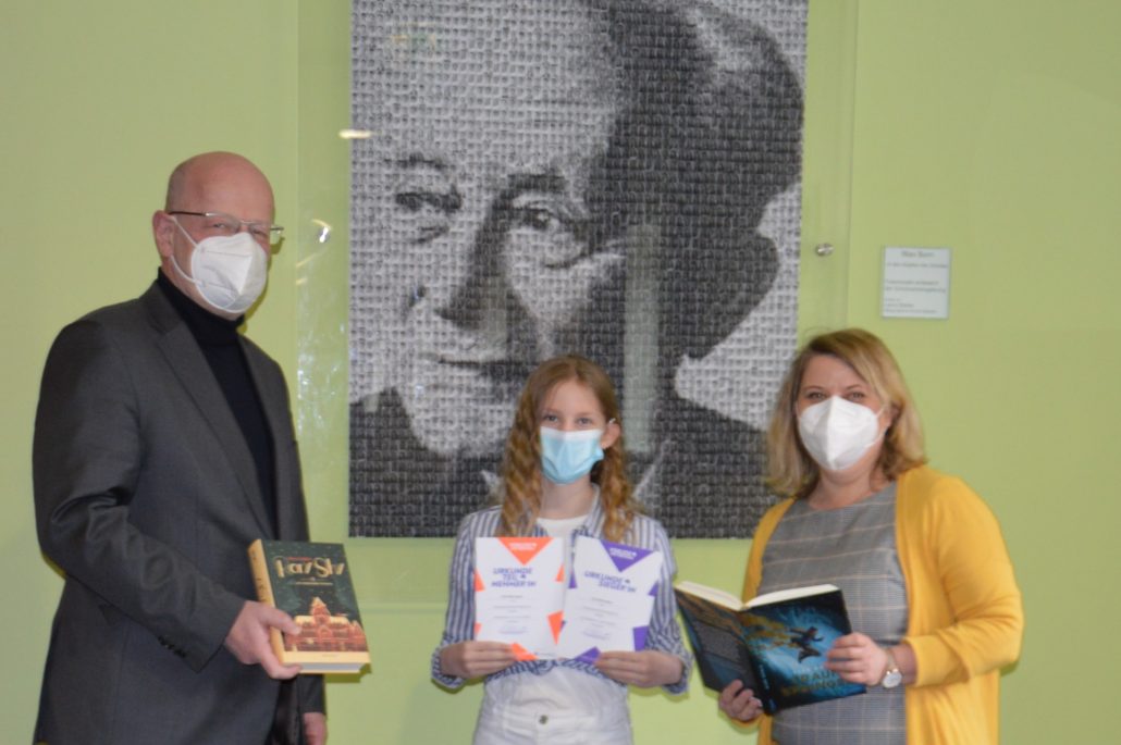 Den Klas­sen- und Schulent­scheid des von der Stif­tung Buch­kul­tur und Lese­för­de­rung des Bör­sen­ver­ei­nes des Deut­schen Buch­han­dels ver­an­stal­te­ten Wett­be­werbs, der im Herbst noch „fast nor­mal“ statt­fin­den konn­te, hat­te Grace mit ihrem Vor­trag aus „Char­lot­tes Traum­pferd“ von Nele Neu­haus für sich ent­schie­den. Der Regio­nal­ent­scheid fand in digi­ta­ler Form per Video-Ein­rei­chung statt. Grace hat­te sich für das Buch „Der Magi­sche 8. Tag“ von Mar­lie­se Arold ent­schie­den. „Ich bin ein ziem­li­cher Fan­ta­sy-Fan, und ich mag es, wenn in Büchern Din­ge vor­kom­men, die es im rich­ti­gen Leben so nicht gibt. Dann kann ich manch­mal rich­tig in die Geschich­ten ein­tau­chen.“