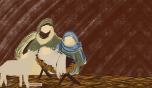 Die Weihnachtsgeschichte, wunderschön gezeichnet von Kim Erben, wurde durch Schülerinnen und Schüler der Kursstufe 2 stimmungsvoll vorgetragen.