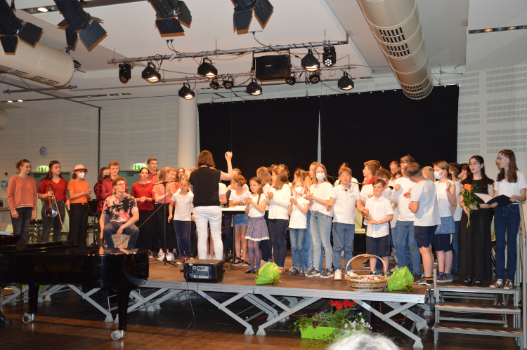Der Unterstufenchor von Lilli-Viola Schuh trug munter, fröhlich und selbstbewusst „Die Gedanken sind frei“ vor. Warmherzig, zart und liebevoll folgte dann das zweite Lied „May the road rise to meet you”, ein Irish blessing.
