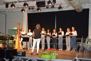 Gemeinsam mit Anezka Kos an der Harfe trugen sie das schottische „Auld lang Syne“ vor, ein Silvesterlied, mit dem auf die Freundschaft angestoßen wird. Dieses Lied war eigentlich für das coronabedingt ausgefallene Weihnachtskonzert gedacht gewesen, passte hier aber sehr gut für die Ankündigung der Pause, in der, bei Bewirtung durch die K2, Geselligkeit und nette Gespräche an der Reihe waren.