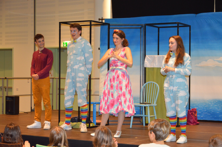Im Anschluss sahen die Fünft- und Sechstklässler das Stück ‚The Empty Chair‘: Robbies Vater hat die Familie verlassen. Mit viel Aufwand und zeitlichen Strapazen bewältigen Robbie und seine Mutter seither den Alltag. Eines Tages landet ein Ufo im Garten. Ein eigenartiges, aber sehr nettes und einfühlsames Wesen klingelt an der Tür. Nach und nach lernen sich Robbies Mutter und das Alien namens Jared näher kennen und verlieben sich ineinander.