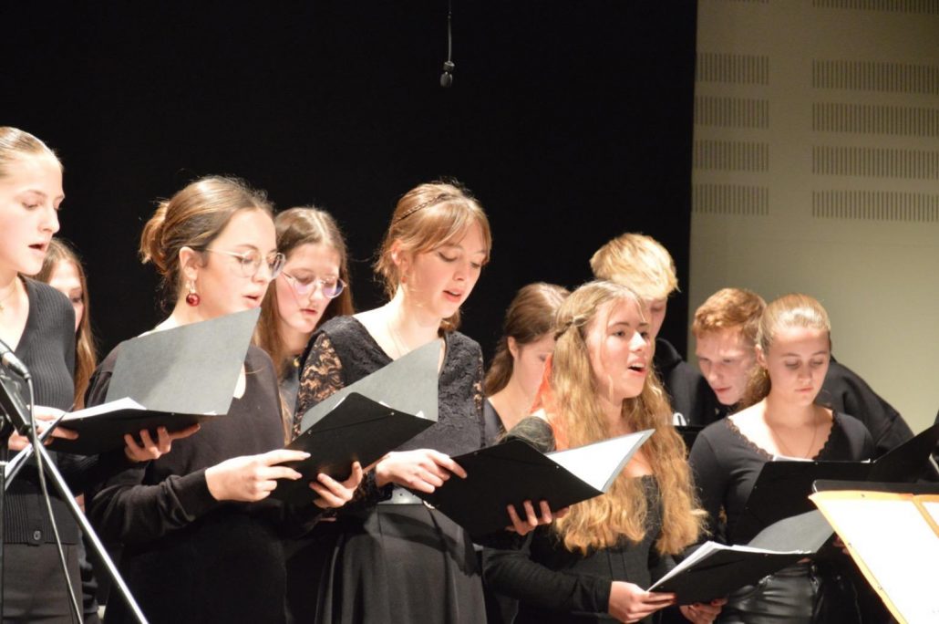 Von den Talenten, die die Fachschaft Musik in der Schülerschaft vorfindet, profitiert die Schule nach innen und außen. Aber auch die Schüler erleben hier vor Eltern, Verwandten und Geschwistern eine Bühne, um sich zu präsentieren, um ihr Können mit Instrument oder Gesang zu zeigen und nach einer langen Zeit des Übens und Vorbereitens durch den Zuspruch des Publikums belohnt zu werden. Dass das alles zu einem großen Ganzen zusammengeführt wird, als sich am Ende mit dem Orchester, Bläserensemble und allen Chören über 60 Mitwirkende auf der Bühne versammelten, das ist das Verdienst der hervorragenden Arbeit der Musiklehrerinnen Lilli-Viola Schuh, Sabine Krings und Julia Ruch. Hier wird Zusammenarbeit im besten Sinne des Wortes erlebbar.