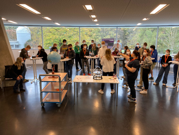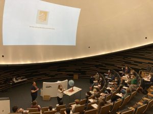 Am dritten Tag des Austausches trafen wir uns wie am Vortag um 8:20 Uhr an der Schule, um diesmal mit einem Sonderbus zum Haus der Astronomie auf dem Königstuhl zu fahren. Dort angekommen wurden wir von Frau Dr. Anna Sippel begrüßt. Sie erklärte uns den Ablauf und teilte uns in zwei Gruppen. Die eine Gruppe war zuerst im Planetarium, in welchem die griechischen PartnerschullehrerInnen Elena Balla und Maria Karakolika der Gruppe die geozentrische und allozentrischen Perspektive bzw. Betrachtungsweise der Himmelsbewegungen anhand einer interaktiven Planetariumsshow verdeutlichten. Die andere Gruppe, die von unseren italienischen PartnerschullehrerInnen Rita Scaffidi und Marco Nicolini geleitet wurde, vollzog mithilfe von 3-dimensionalen Modellen (zum einen sog. Flaschengloben und zum anderen dem Schattenwurf auf einem riesigen Globus) die Bewegung der Sonne und der Sterne am Himmel nach.