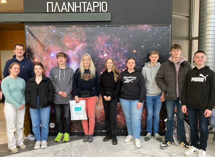 Im Rah­men des drei­jäh­ri­gen Eras­mus+ Pro­jekts TASTE (=Tea­ching ASTro­no­my at Edu­ca­tio­nal level), einem Zusam­men­schluss von jeweils einer Schu­le und einem For­schungs­in­sti­tut aus den Län­dern Bel­gi­en, Ita­li­en, Grie­chen­land und Deutsch­land, in wel­chem u.A. Astro­no­mie-Lehr­ma­te­ria­li­en für Schu­len ent­wi­ckelt und in die­sen vier Län­dern getes­tet wer­den soll­ten, stand vom 12. bis 16. Febru­ar 2023 die Test­pha­se in Grie­chen­land an, und so kamen 8 MBG-Schü­le­rIn­nen aus den 9. bis 11. Klas­sen­stu­fen zusam­men mit Ihren Leh­re­rIn­nen Frau Dr. I. Thier­ing und Herrn F. Bri­end in den Genuss, nach Thes­sa­lo­ni­ki rei­sen zu dür­fen.