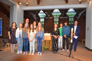 Der letzte Schultag begann traditionell mit dem Abschlussgottesdienst. Dieser war unter dem Motto „Offene Augen – weites Herz“ von Nancy Kramolisch und Verena von Busekist gestaltet worden. Thematisch ging es um das Füreinanderdasein, das einander Zuhören und das einander Helfen. Hanna Steck las die Geschichte vom barmherzigen Samariter aus dem Lukas-Evangelium. Auch wenn es einmal eine Situation geben sollte, in der einem scheinbar niemand zur Seite steht, gibt es auf jeden Fall Gott, der einem beisteht und einen sieht.