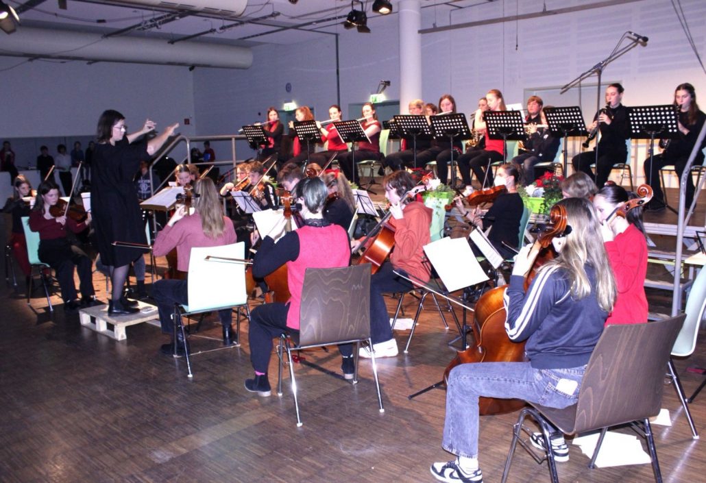 Die Vielfalt setzte sich fort, als Louisa Christopher in soft-dahinschmelzendem Gesang am Klavier „Have yourself a Merry little Christmas“ darbot, und Andrii Rusanov mit seiner auswendig am Klavier rasant wie beseelt gespielten Fantasie Impromptu Op.66 von Frederic Chopin Begeisterungsstürme auslöste. Den zweiten Teil des Konzertabends nahm vor allem das von Julia Ruch und Katrin Kieckhäfer-Wüst geleitete Orchester ein, das Streicher und Bläser vereinte. Mit „Carol of the Kings“, „The First Noel“ oder Highlights aus Harry Potter gelangen beeindruckende Interpretationen.