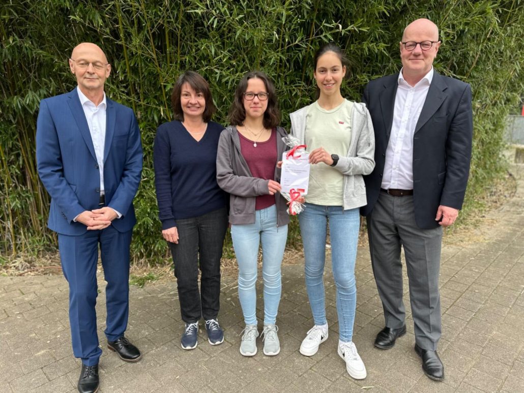 Am Freitag, den 22.03.24, übergab Herr Claudius Hurst, der Sparkassen Regionalleiter Neckargemünd-Elsenztal, den Preis an Lara Haffner und Laura Guthier.