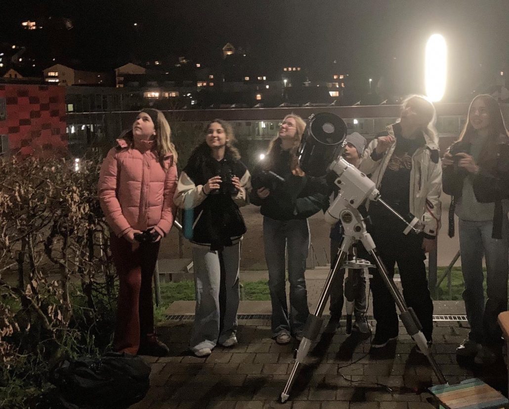 Am 3. März fand um 19.30 Uhr erneut ein Beobachtungsabend für Schülerinnen und Schüler der IMP- und Astronomie Kurse sowie der Astro-AG statt. And diesem Abend war der Himmel besonders klar und gut geeignet, um Himmelsobjekte zu beobachten. Zu Beginn durften wir nach einer Einführung in die Bedienung durch das große Schulteleskop schauen, dort haben wir Jupiter und seine vier galileischen Monde in beeindruckendem Detail gesehen. Besonders bemerkenswert war an diesem Abend die Möglichkeit, das Orion-Trapez und Strukturen des Orionnebels zu beobachten. Ausgestattet mit Feldstechern wurden wir zur eigenständigen Erkundung im Nachthimmel eingeladen und konnten nach Interesse verschiedene Himmelsobjekte beobachten, darunter Raumstationen, die Plejaden, die Hyaden und Doppelsterne z.B. die Sterne Alcor und Mizar im Sternbild „Großer Wagen“. Parallel dazu hat uns Frau Thiering einige spannende Fakten zu all den beobachteten Objekten erzählt. Trotz der Kälte, die dem wolkenlosen Himmel zu verdanken war, blieb die Stimmung heiter. Die meisten Schülerinnen und Schüler erlebten zum ersten Mal den Beobachtungsabend, aber selbst die, die zum zweiten Mal dabei waren, konnten viel Neues lernen.