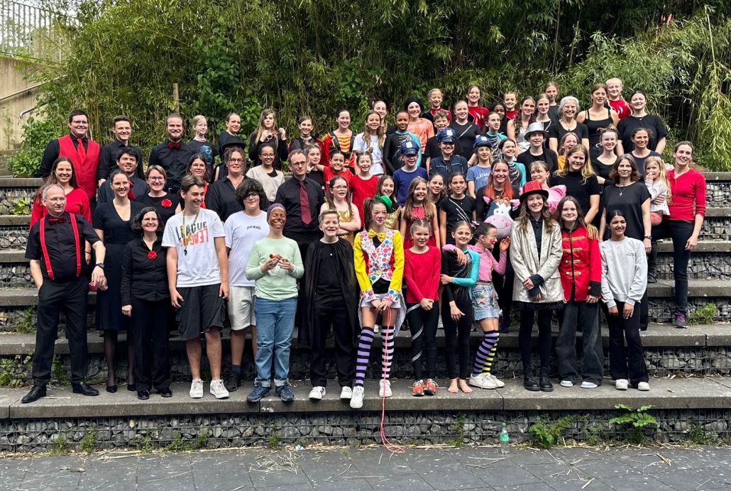 Die Unter­stüt­zung, die die Auf­füh­rung erfuhr, war viel­fäl­tig: Mar­ti­na Camen­zind zeich­ne­te für die Rhön­rad-Auf­trit­te ver­ant­wort­lich, Vero­ni­ka Keyl für das Schau­spiel, Michae­la Rau­ter­berg und Ali­na Jahn für Akro­ba­tik und Artis­tik und dann gab es noch die Koope­ra­ti­on mit den Musik­freun­den Hei­del­berg. Schul­lei­ter Joa­chim Phil­ipp bedank­te sich hin­ge­ris­sen von der gelun­ge­nen Dar­bie­tung am Ende gemein­sam mit sei­nem Stell­ver­tre­ter Tho­mas Hein­lein bei den Unter­stüt­zern der Auf­füh­rung allen vor­an Star-Gast­di­ri­gent René Schuh von den Musik­freun­den Hei­del­berg, der begeis­ternd das mit ver­sier­ten Musi­ke­rin­nen und Musi­kern des Musik­freun­de und des Gym­na­si­ums besetz­te Orches­ter und den Kin­der­chor durch die gran­dio­se Vor­stel­lung führ­te. Oben­drein hat­te er gemein­sam mit Johan­nes Eich­horn noch die Tech­nik ein­ge­rich­tet, die die Tech­nik-AG beglei­te­te.