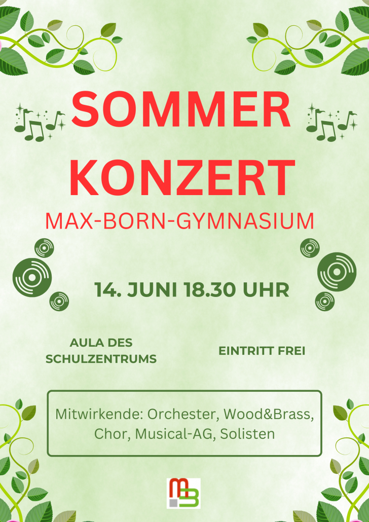 Herzliche Einladung zum Schulkonzert am Freitag, den 14. Juni um 18:30 Uhr in der Aula des Schulzentrums