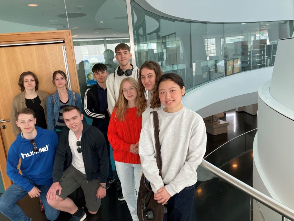 Am 12. Juni fand die Exkur­si­on des Astro­no­mie-Kur­ses zum Haus der Astro­no­mie und dem Max-Planck-Insti­tut für Astro­no­mie auf dem König­stuhl statt. Der Tag begann mit einem Besuch im Haus der Astro­no­mie, des­sen Gebäu­de die Form einer unse­rer Nach­bar­ga­la­xien „Mes­sier 51“ nach­ahmt. Dort besich­tig­ten wir Model­le von Tele­sko­pen, die in Wirk­lich­keit von beein­dru­cken­der Grö­ße sind. Anschlie­ßend konn­ten wir in einer inter­ak­ti­ven Pla­ne­ta­ri­ums-Show durch das Uni­ver­sum rei­sen und Pla­ne­ten, wie den Mars oder die Rin­ge des Saturn von Nahem betrach­ten.