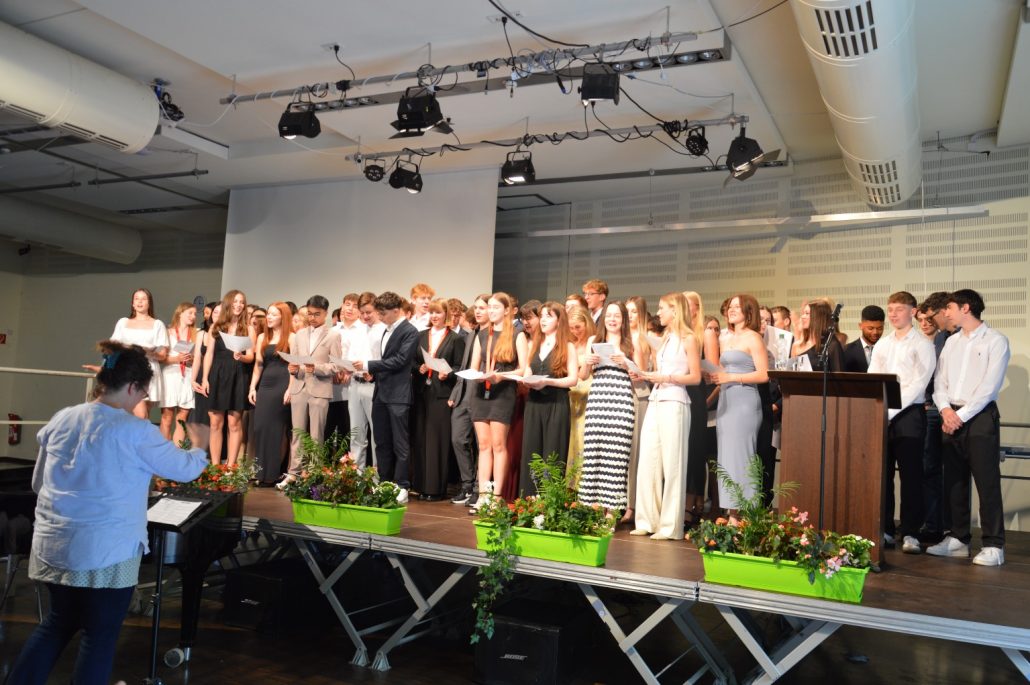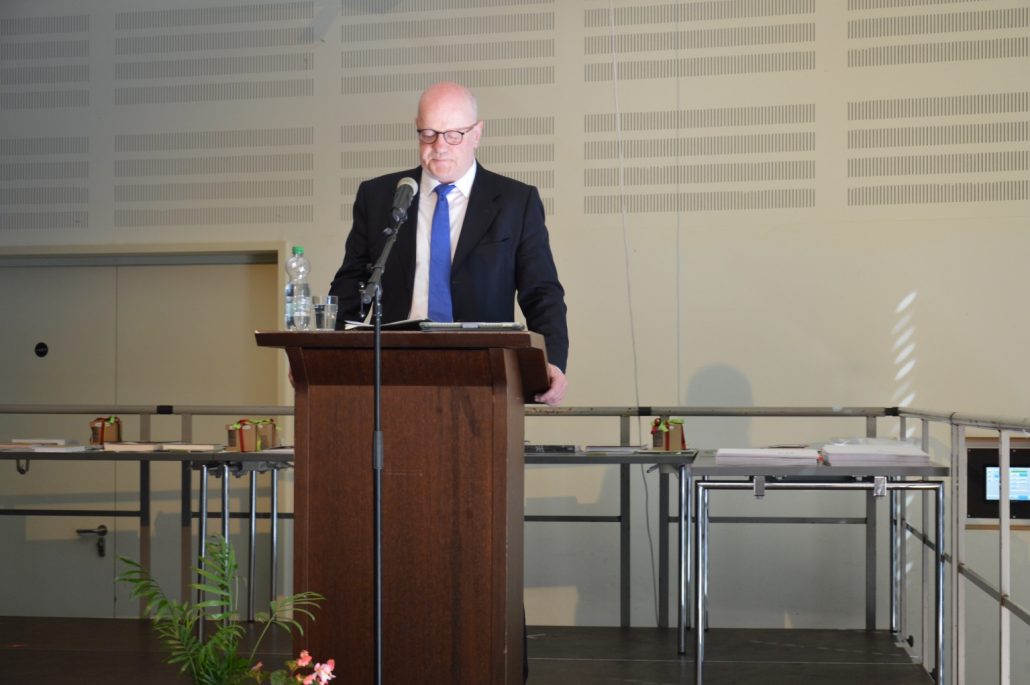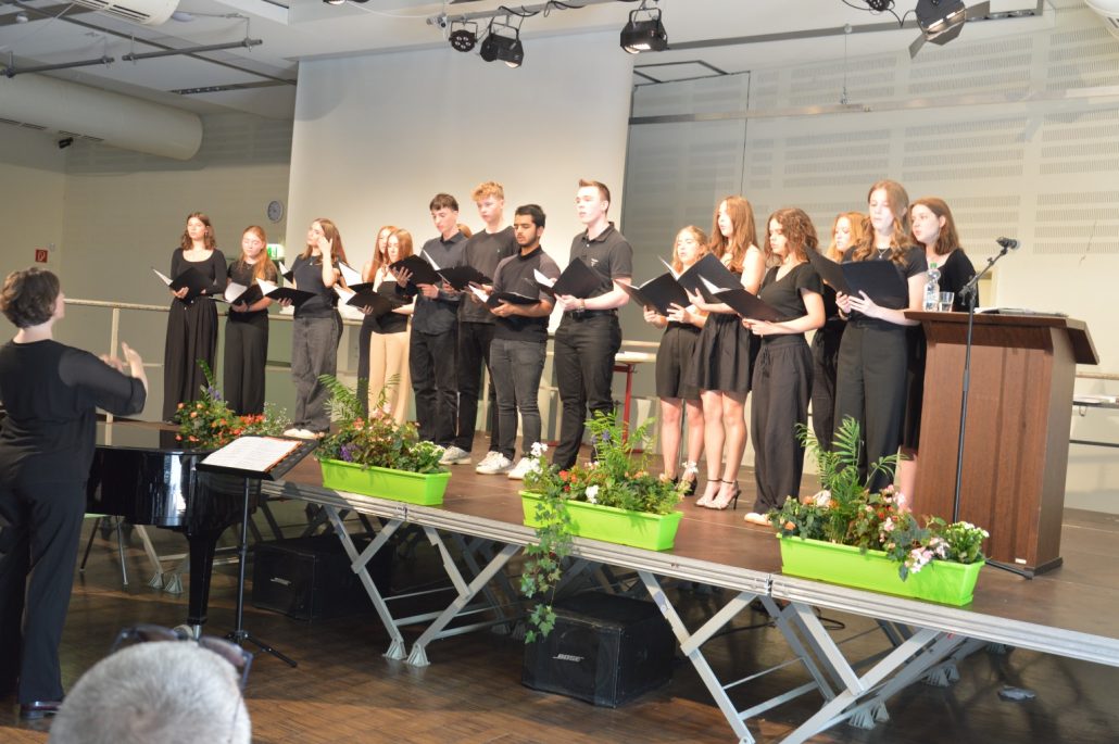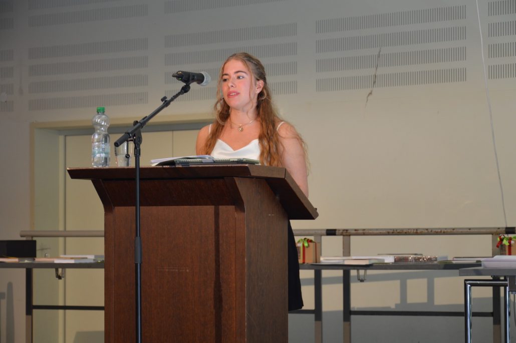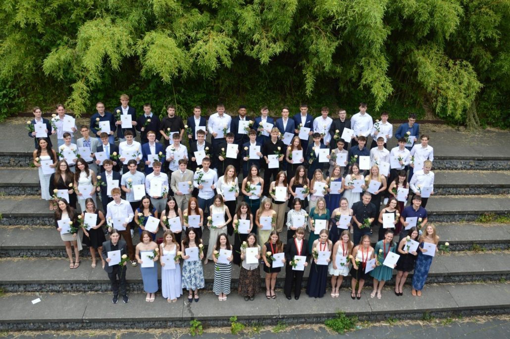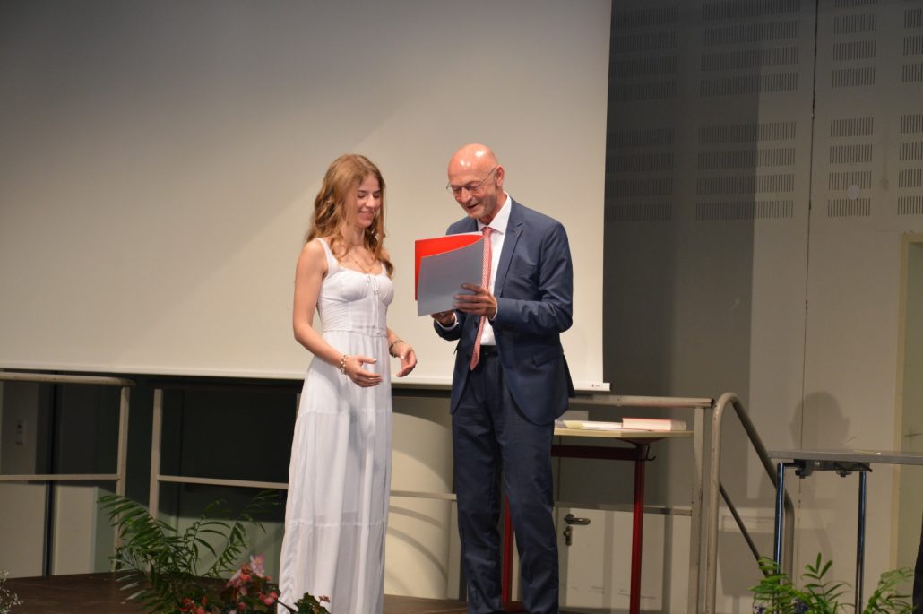 Sehr viele Abiturienten – 26 – haben sogar eine Eins vor dem Komma, führte Joachim Philipp weiterhin aus. Sechs Absolventen haben sogar einen Traumdurchschnitt von einer glatten 1,0. Die Absolventen stünden nun an einem Übergang – wobei das Leben grundsätzlich aus Übergängen bestehe. Philipp ging unter anderem auf schulische und neuronale Reife, auf Bildung und Allgemeinbildung ein. „Ich wünsche euch weiterhin ein Brennen für die Bildung und das Wissen, eine Begeisterung für neue Themen sowie das Erleben von Inspiration, die Wissen vermitteln kann“, so Philipp. Außerdem: „Eine wissenschaftliche Bescheidenheit und Toleranz anderen Meinungen gegenüber“. Die Absolventen sollen die Neugierde, Lust auf Mehr, das Interesse und Freude am eigenen Verstehen behalten sowie das Eigene kritisch überprüfen im Sinne der Aufklärung. „Wissen und Bildung sei der beste Impfstoff gegen Demagogie, Populismus und Fake News“. Mit den Worten „Es war sehr schön, dass ihr Schüler bei uns wart“ schloss Schulleiter Joachim Philipp seine Rede und wünschte den Absolventen alles Gute.