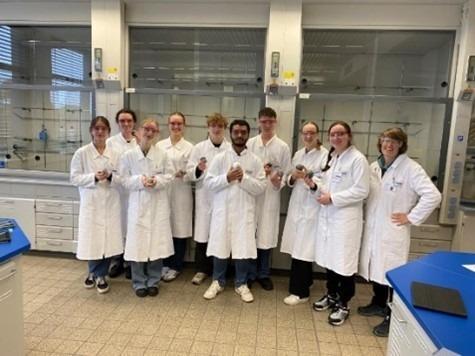 Am 8.11.24 unternahm der Chemie-Leistungskurs der Kursstufe 2 eine Exkursion in das Chemielabor der BASF in Ludwigshafen. Im Mittelpunkt der Veranstaltung stand das Thema Kunststoffe, deren Herstellung, Eigenschaften und Anwendungen wir im Rahmen von praktischen Versuchen näher kennenlernen durften.