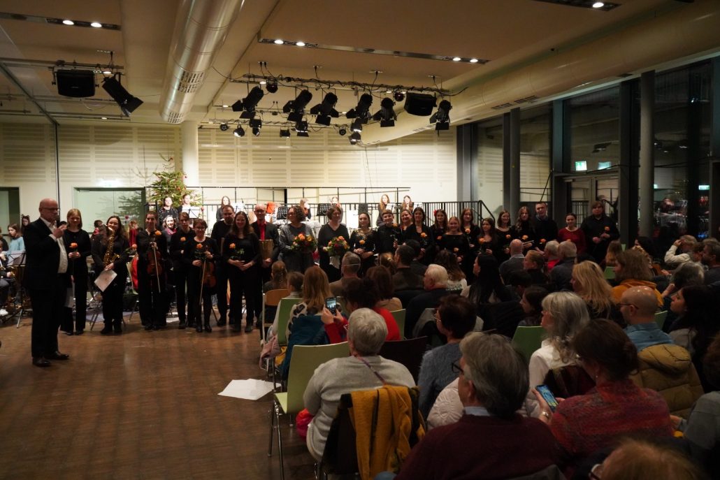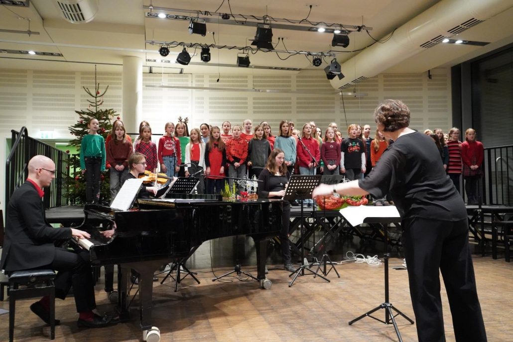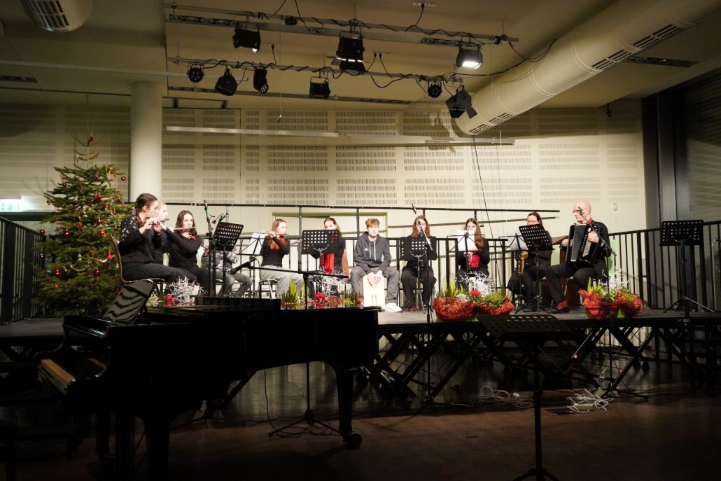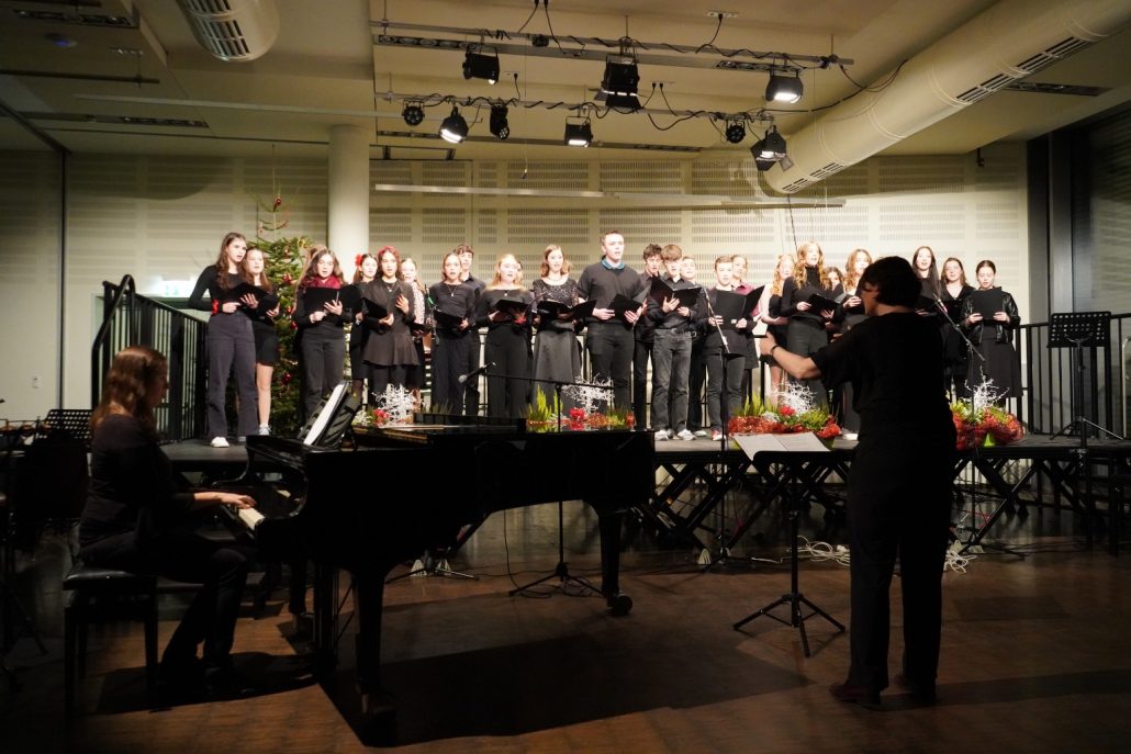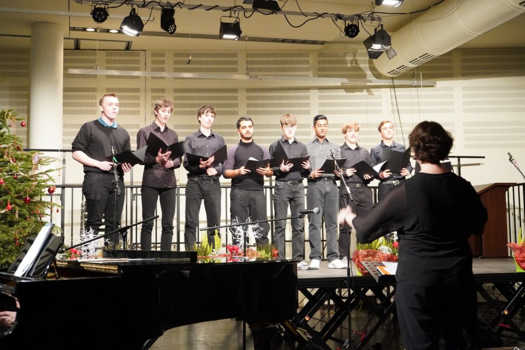 Ein Höhepunkt von vielen war das Orchester „SELO“, bestehend aus Schülern, Eltern, Lehrern und ehemaligen Schülern, die „A Million Dream“ aus „The Greatest Showman“ spielten. Die Idee für solch ein Ensemble hatten während der Corona-Pandemie die fünften und sechsten Klassen gehabt. Indes machte der Mittel-Oberstufenchor Stimmung unter anderem mit „A holly jolly Christmas“. Und Louisa Christopher begeisterte sowohl gesanglich als auch am Klavier. Indes performten Grace McCaughey, Meriel Kos, Samuel McCaughey und Michelle Chiriac mit „When We Are Together“. Die vielen tollen musikalischen Darbietungen begeisterten alle und sorgten für vorweihnachtliche Stimmung. Und gemeinsam wurde zum Schluss „Rudolph, The Red-Nosed Reindeer“ gesungen. Zwischen den musikalischen Darbietungen gab es eine Pause, in der man unter anderem bei leckeren Waffeln ins Gespräch kam.