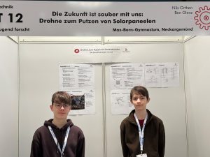 Einen dritten Preis erhielten Levin Sauter (10a) und Friedrich Diesner (10a). Sie möchten Höhlen erforschen und haben dafür nicht einfach eine Drohne, sondern gleich einen ganzen GPS-unabhängigen Drohnenschwarm entwickelt und damit die Jury beeindruckt.