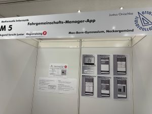 Sich eine komplizierte Programmiersprache selbst beibringen und eine App programmieren, die man sogar im Amazon Appshop herunterladen kann?Kein Problem für Justus Onischka (9b). Er findet, dass Fahrten und Mitfahrgelegenheiten, z. B. in Vereinen gerechter verteilt werden sollten und hat für seine MitfahrApp sogar den Regionalsieg im Bereich Informatik/Mathematik bei Jugend forscht Junior erhalten. Damit darf er das MBG beimLandeswettbewerb vertreten.