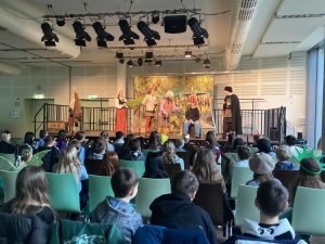 „Das hat rich­tig Spaß gemacht, die Schau­spie­ler waren tol­lund wir konn­ten auch das meis­te von der Hand­lung ver­ste­hen“, war sich die 5c einig. Am 28. Febru­ar 2025 war das White Hor­se Theat­re zu Gast am MBG und alle 5. und 6. Klas­sen kamen in den Genuss einer Auf­füh­rung von „Maid Mari­an“.