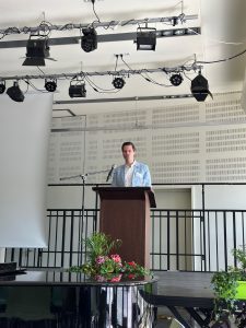 Taymur Johannes Weber, Abiturient von 2015, hatte für seine Ansprache an den Jahrgang eine Präsentation vorbereitet – die zunächst im Spamordner der Schule landete, aber schließlich doch noch ihren Weg auf die Leinwand fand. Mit Humor und Tiefgang führte er durch das fiktive „ABITUR“-Alphabet: A wie Amüsement (z. B. bei Studienfahrten), B wie Beharrlichkeit, I wie Intellektuelle Blüte, T wie Turbulenz, U wie Unbekümmertheit – zumindest nach den Prüfungen – und R wie Realität, mit der die Entscheidungen des Lebens beginnen. Den Abschluss seiner Rede bildete ein Zitat von Friedrich Nietzsche: „Wer ein Warum zum Leben hat, erträgt fast jedes Wie.“