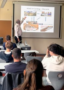 Zunächst gab Schütte den Jugendlichen einen anschaulichen Einblick in seine Arbeit im Landtag. Anhand seines Wochenplans erläuterte er detailliert seine Aufgaben in Stuttgart und im Wahlkreis vor Ort. Den Schülerinnen und Schülern wurde schnell klar, es gibt im Alltag eines Abgeordneten spannende und zu Teilen auch fordernde Termine.