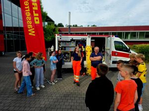 Maßgeblich gestaltet wurde der Tag von der DLRG Ortsgruppe Neckargemünd, die mit großem Engagement ein abwechslungsreiches Programm auf die Beine stellte. An mehreren Stationen erhielten die Kinder Einblicke in die Arbeit von Rettungskräften und Aufgaben beim Personen- und Bevölkerungsschutz. Dabei durften die Schülerinnen und Schüler auch selbst aktiv werden, zum Beispiel beim Testen von Rettungsausrüstung.