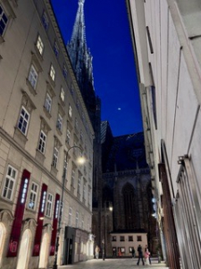 Am Montag, dem 20. Oktober, kamen wir leider mit deutlicher Verspätung (die Deutsche Bahn: man bekommt viel mehr Fahrtzeit als einem zusteht) ca. 16:30 Uhr in unserem Hotel in Wien an. Nach dem super schnellen Check-in im Hotel blieb kaum Zeit zum Ausruhen, denn um 17:30 Uhr startete schon unsere Stadtführung mit dem spannenden Thema „Geheimbünde in Wien“. Der Guide erzählte uns interessante Geschichten über versteckte Orte, historisch besondere Ereignisse und natürlich Geheimbünde, wie die Freimaurer, während er uns einige der wichtigsten Sehenswürdigkeiten zeigte. Die Führung war informativ, locker und unterhaltsam. Danach hatten wir den Abend zur freien Verfügung und konnten in kleinen Gruppen die Stadt erkunden – perfekt, um Wien gleich a bisserl besser kennenzulernen.