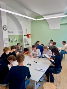 Am Dienstag stand Kunst auf dem Programm: Um 11:30 Uhr besuchten wir die Albertina. Dort bekamen wir eine Führung durch die Ausstellung „Light is what we see“ der Künstlerin Brigitte Kowanz, die sich damit beschäftigt, wie Licht, Raum und Wahrnehmung miteinander zusammenhängen. Besonders cool war, dass Licht hier nicht nur als etwas Physikalisches gezeigt wurde, sondern auch als Symbol für Information, Kommunikation, auch im Bereich Social Media. Im anschließenden Workshop konnten wir eigene kleine Kunstwerke gestalten, bei denen der bei Kowanz immer wiederkehrende Morsecode eine Rolle spielt. (Zitat: „Das war echt cool und mal was ganz anderes.“) Anschließend hatten wir Zeit die Werke der Albertina außerhalb der Sonderausstellung zu bestaunen.
