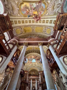 Am Nachmittag ging es zur Österreichischen Nationalbibliothek, wo wir etwas über die Architektur, die Ausstattung und natürlich über die Bücher erfuhren. Beeindruckend war die Tatsache, dass es dort Bücher gibt, die mehrere Jahrhunderte alt sind – echte Schätze also – und sie schon seit des Kaisers Zeiten bis heute frei für die Öffentlichkeit zugänglich sind. Danach sind wir gemeinsam zum Naschmarkt gegangen, wo wir uns durch das riesige Angebot an internationalen Speisen durch probieren konnten. Danach ließen wir den Tag gemütlich ausklingen.