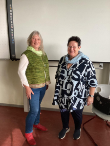 Carmen Feil und Nathalie Stark, ehrenamtliche Mitarbeiterinnen des ambulanten Hospizdienstes Elsenztal. Die beiden berichteten von ihrer wichtigen Aufgabe, Menschen am Lebensende zu begleiten – sei es zu Hause oder in einem Pflegeheim. Überraschend für viele Schüler:innen war, dass die Hospizarbeit nicht ausschließlich schwer und traurig ist. „Es wird viel gelacht“, berichteten die beiden. Die Begegnungen können trotz der ernsten Situation leicht, herzlich und zugewandt sein.