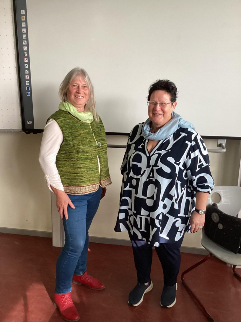 Carmen Feil und Nathalie Stark, ehrenamtliche Mitarbeiterinnen des ambulanten Hospizdienstes Elsenztal. Die beiden berichteten von ihrer wichtigen Aufgabe, Menschen am Lebensende zu begleiten – sei es zu Hause oder in einem Pflegeheim. Überraschend für viele Schüler:innen war, dass die Hospizarbeit nicht ausschließlich schwer und traurig ist. „Es wird viel gelacht“, berichteten die beiden. Die Begegnungen können trotz der ernsten Situation leicht, herzlich und zugewandt sein.