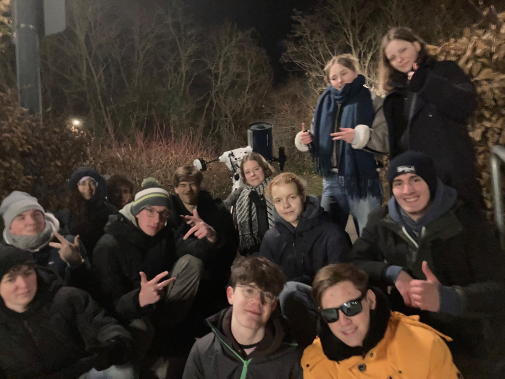 Am 21. Januar traf sich der K1-Astronomie Kurs von Frau Thiering um 20:30 Uhr auf dem Lehrerparkplatz der Schule, um gemeinsam einen Beobachtungsabend durchzuführen. Die Beobachtung dauerte bis etwa 22:00 Uhr und bot uns viele spannende Einblicke in den Nachthimmel.